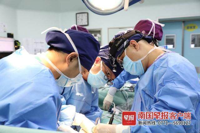 广西医科大学第一附属医院器官移植科主任董淳强介绍,为了器官利用最大化,移植团队将妮卡捐献的肝脏劈离为左右两边,分别移植给两位终末期肝病患者。