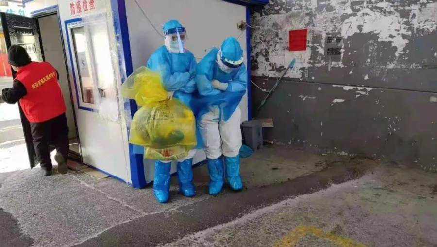 现在,这两名医务工作者终于找到了,她们是牡丹江市肿瘤医院的护士赵晶和医生赵佳琪。当听说绥芬河需要医护支援时,两人都第一时间请战报名,在12月11日就随同支援队来到绥芬河,并被分配到一组。而这被网友捕捉到的一幕,正是她们日常工作中的寻常瞬间。