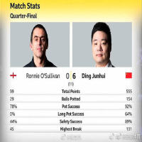 丁俊晖赛后表示:比分让我很意外,因为我们前两局打得不好,有很多失误,但最后我打得非常好。我提醒自己前天在两轮前的比赛,保持得分的手感,专注于击球。