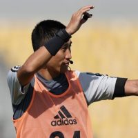 ↑国际足联裁判委员会主席皮耶路易吉·科利纳(下)观看训练