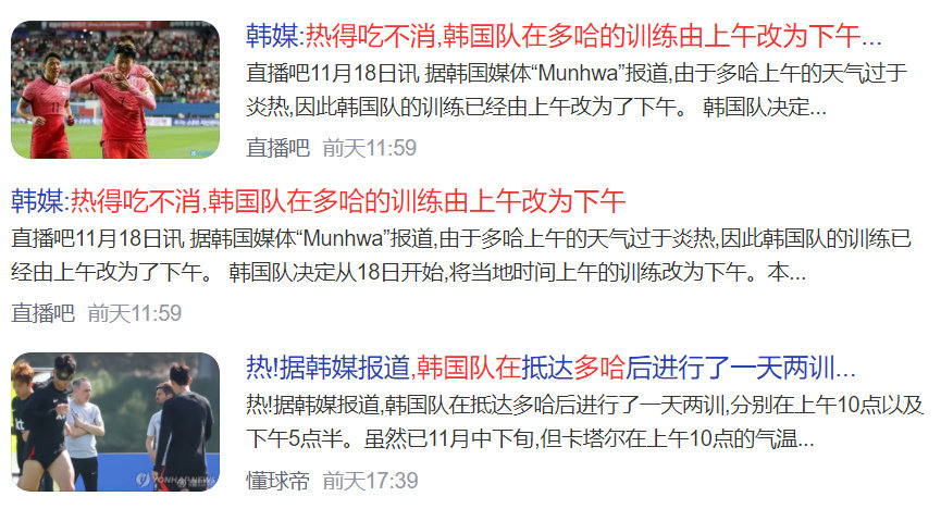 据韩媒报道,韩国足球队受高温影响更改训练时间
