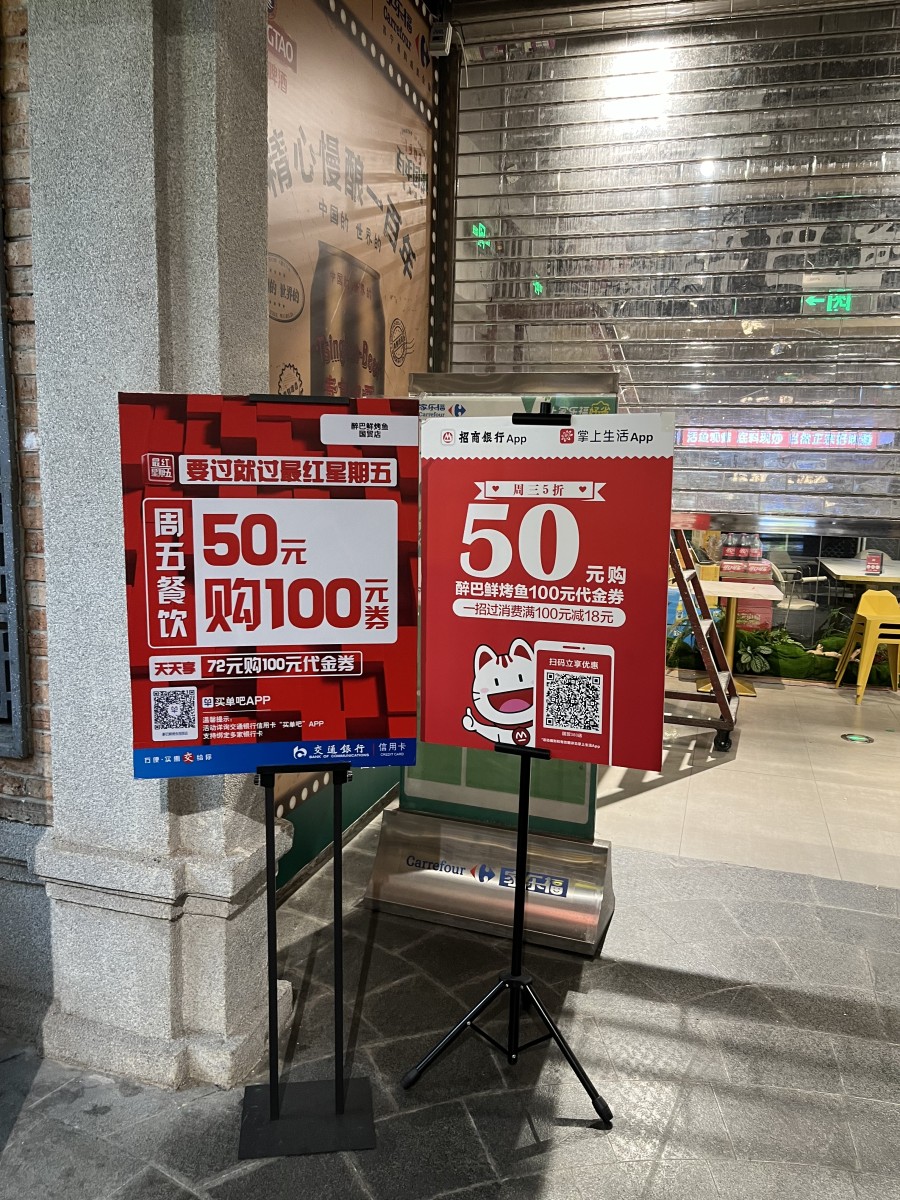 11月23日上午,记者来到新田360广场看到,位于商场地下一楼的家乐福招牌还在,但场地已经被其他餐饮店使用,门口还摆放着店铺优惠的宣传牌。