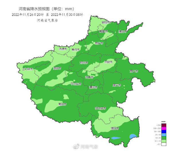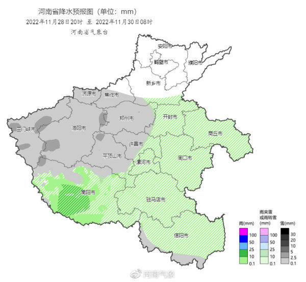 图1 2022年11月28日20时-30日08时河南省降水量预报