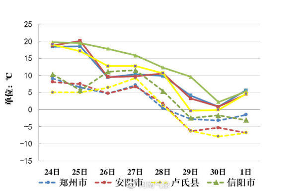 河南:局地最低气温骤降16℃以上并伴大风雨雪天气