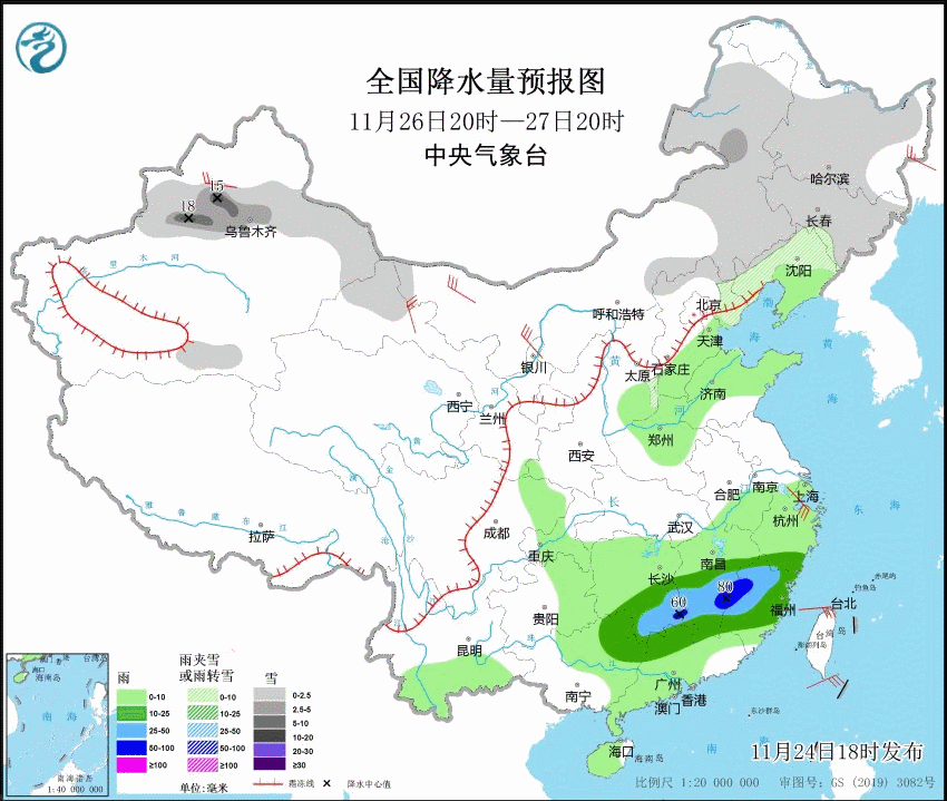 北方的雨雪主要集中在新疆、内蒙古、东北一带,南方持续阴雨,江南中北部以及江淮南部等地为降水重心,黄淮、江淮可能看到雪花。