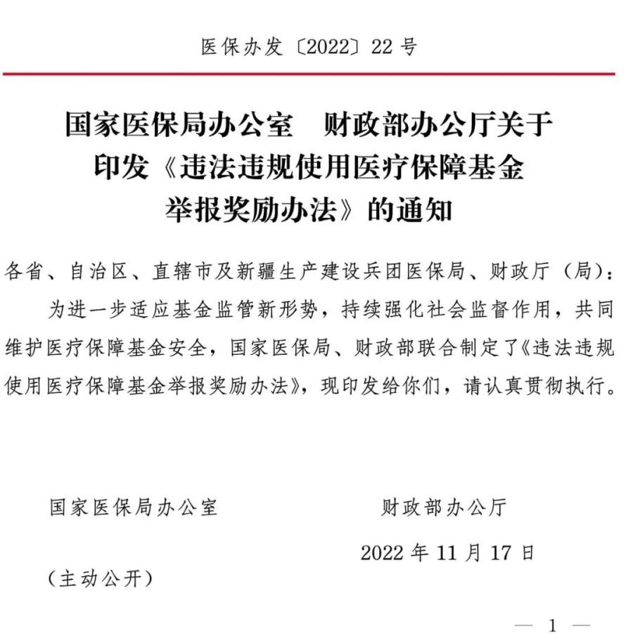 两部门:举报违规使用医保,最高一次性奖励20万元