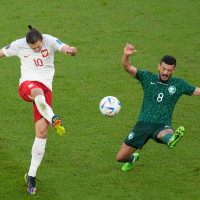 2022世界杯小组赛C组,波兰2-0击败沙特!杰林斯基打破僵局,什琴斯尼扑出多萨里主罚的点球,莱万禁区前抢断单刀推射破门,打入个人世界杯首球!