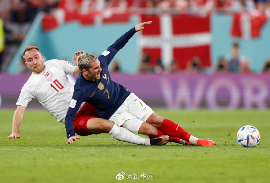 法国2-1战胜丹麦,提前晋级16强