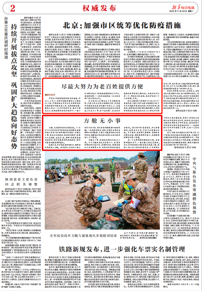 11月28日凌晨,新华社连发三篇时评聚焦疫情防控,指出越是形势严峻复杂,越要保持战略定力。