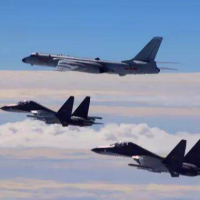 中方派出4架轰-6K飞机,与俄方2架图-95飞机联合编队,位日本海、东海有关空域组织联合巡航