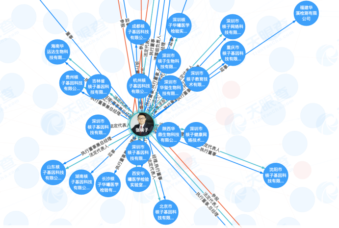 据记者梳理,在北京、郑州、兰州、青岛、武汉等各地数十家“核子华曦”公司中,张姗姗只是监事。而这些公司的母公司均为核子基因,背后的实控人其实是张核子。天眼查数据显示,张核子目前掌握着89家公司的实际控制权,其中大量公司业务涉及检测检验业务。