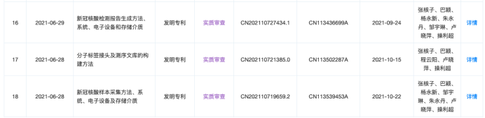 而从天眼查的专利数据来看,在核子基因申请的专利中,带有“新冠”字样的专利最早出现在2021年6月,“新冠核酸样本采集方法、系统、电子设备及存储介质”专利中写到:“本申请实施例将采样容器的标识码与样本采集对象的录入信息进行绑定,能够保证与采样容器绑定的样本采集对象的生物样本能够正确存放在该采样容器中,提高采样过程的可靠性,进而提高样本检测结果的准确率。”