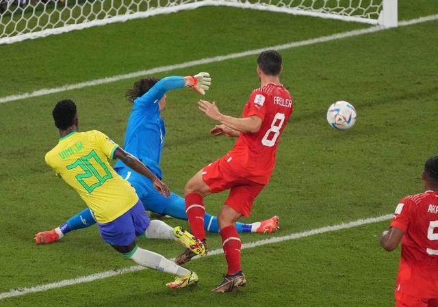 在28日进行的卡塔尔世界杯G组第二轮小组赛中,内马尔缺阵的巴西队1:0击败瑞士队,提前锁定一个16强席位。