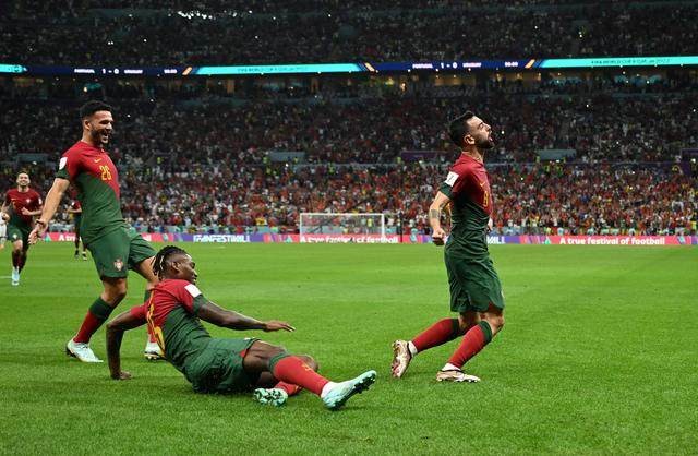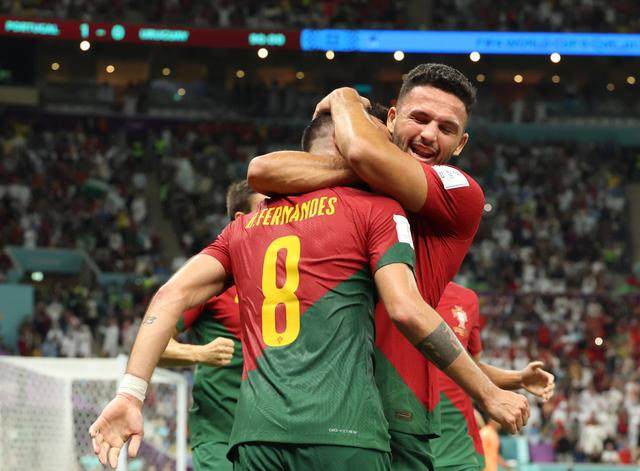 在卡塔尔卢赛尔球场进行的2022卡塔尔世界杯足球赛H组比赛中,葡萄牙队以2比0战胜乌拉圭队。