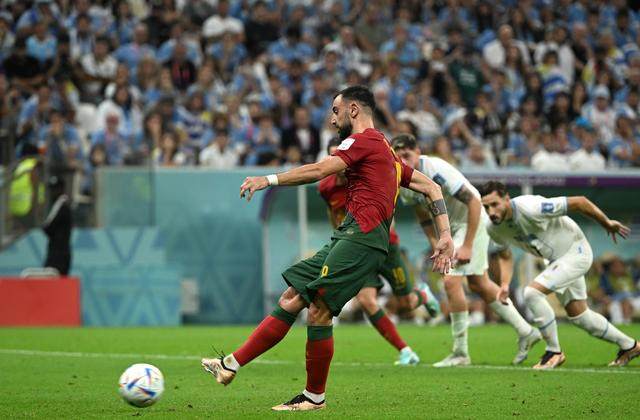 11月28日,葡萄牙队球员布鲁诺·费尔南德斯主罚点球命中。新华社记者 李尕 摄