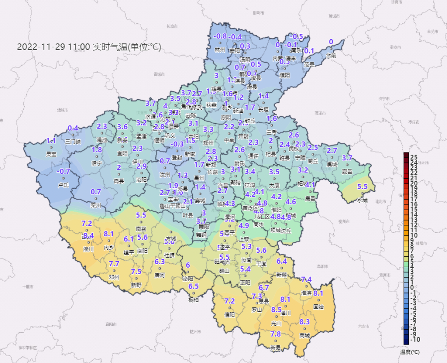 我省气温已明显下降,中午11时