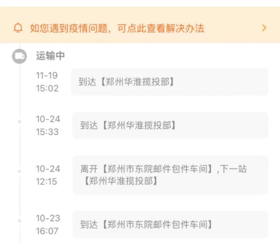 同时,针对郑州收件地迟迟不发货的原因,有商家表示,因为每个地方防疫政策不同,比如发货地发往郑州的路上某一个中转站有问题,都有可能导致货品出不了单子,从而无法发货。