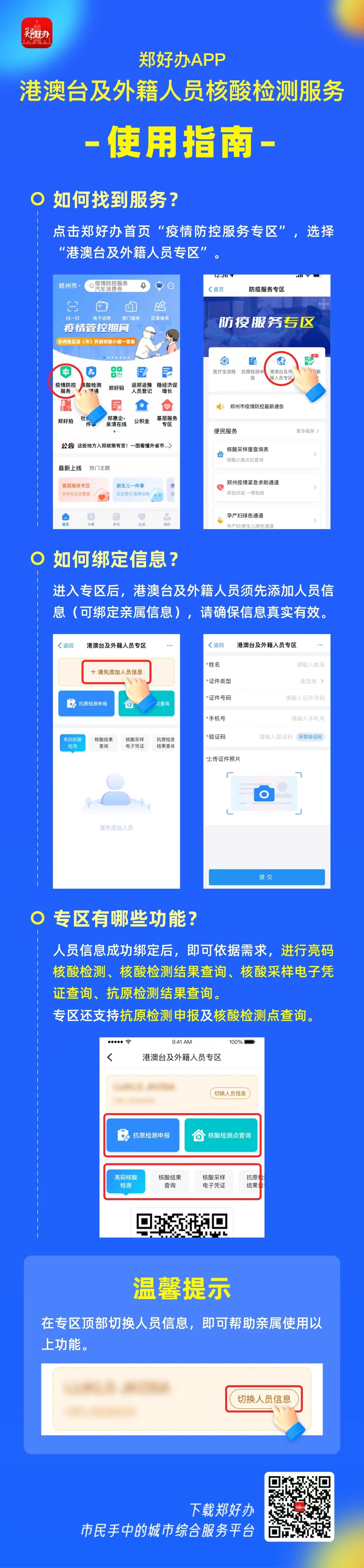 “郑好办”上线“港澳台和外籍人员”核酸检测相关服务