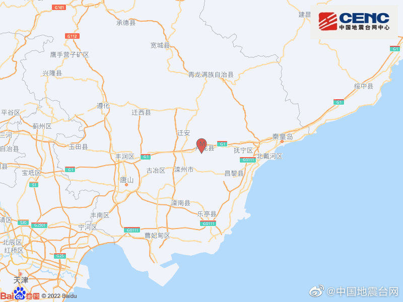 河北秦皇岛卢龙县发生3.8级地震,震源深度10千米