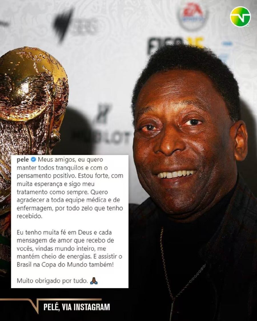 贝利发文报平安:我很坚强充满希望,会看巴西队世界杯比赛
