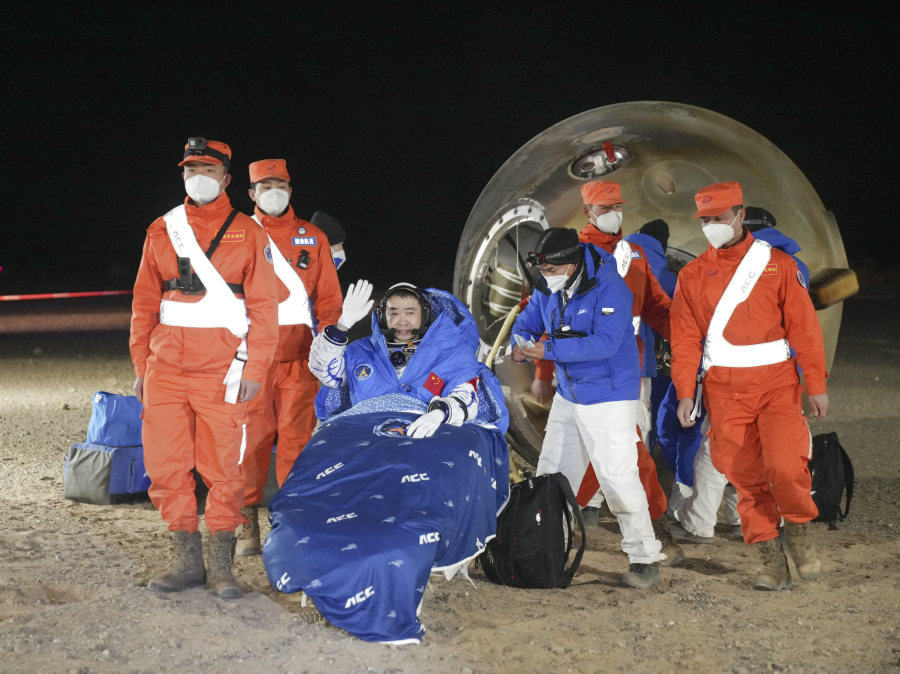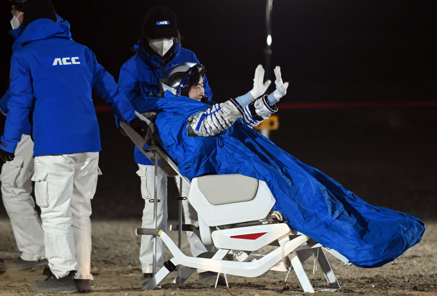 在中国空间站出差183天后,航天员陈冬、刘洋、蔡旭哲踏上回家之旅。