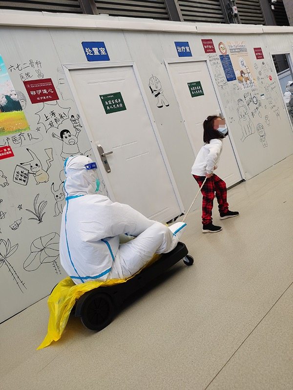 4月份在方舱医院,“大白”刚刚哥哥陪唐女士6岁半的女儿糖糖玩,让孩子在方舱的生活多了色彩。