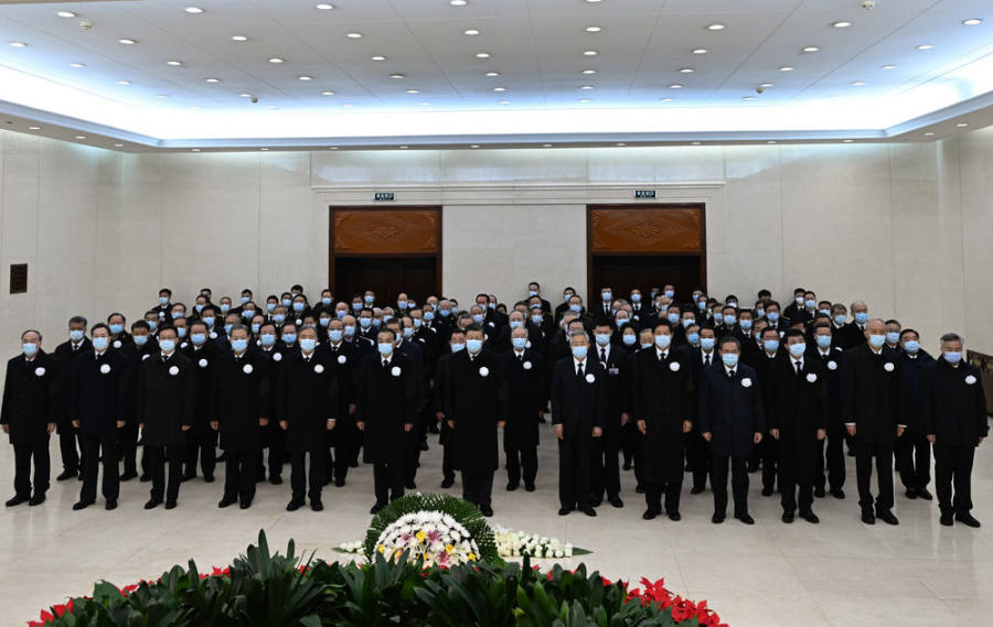 12月5日,江泽民同志的遗体在北京火化。这是习近平、李克强、栗战书、汪洋、李强、赵乐际、王沪宁、韩正、蔡奇、丁薛祥、李希、王岐山、胡锦涛等到中国人民解放军总医院为江泽民同志送别。新华社记者 谢环驰 摄