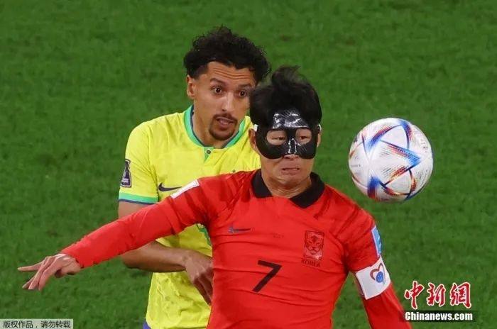当地时间12月5日,2022卡塔尔世界杯1/8决赛,巴西队对阵韩国队的比赛在974球场举行。图为韩国球员孙兴慜在比赛中。