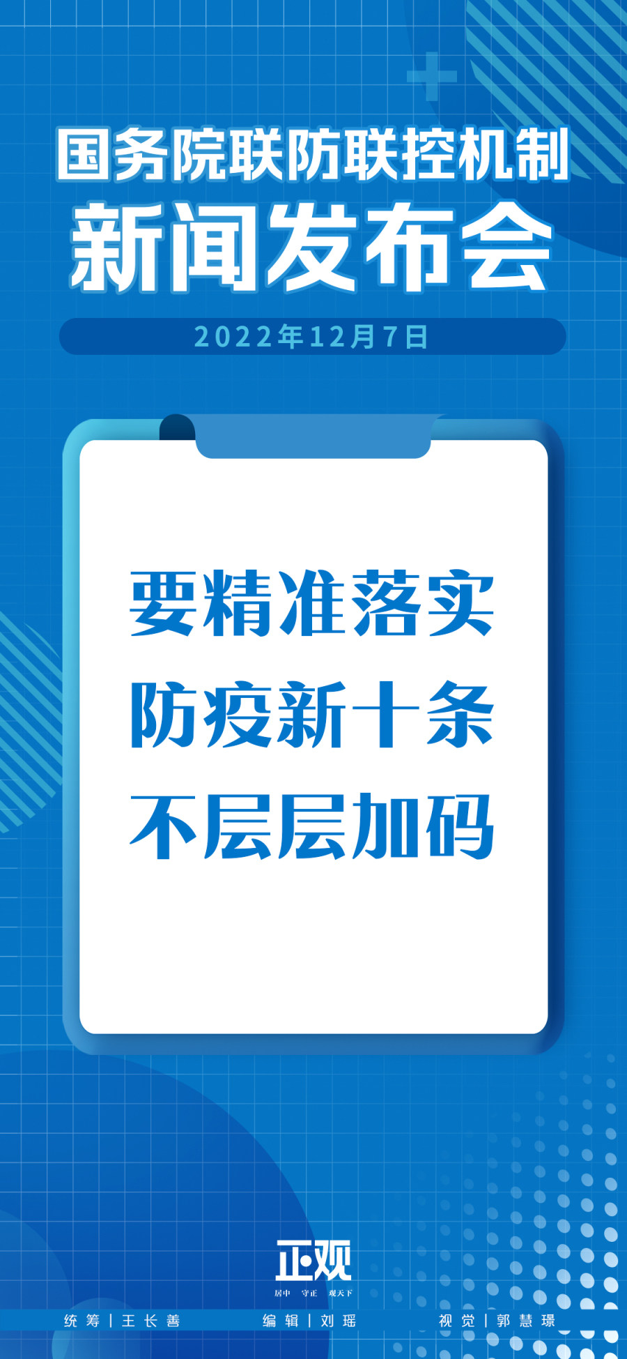 今天,国务院联防联控机制综合组出台了《进一步优化落实新冠肺炎疫情防控的措施》。这十条措施,是为了持续提高防控的科学精准水平,执行中要坚决纠正简单化、“一刀切”,不搞层层加码。