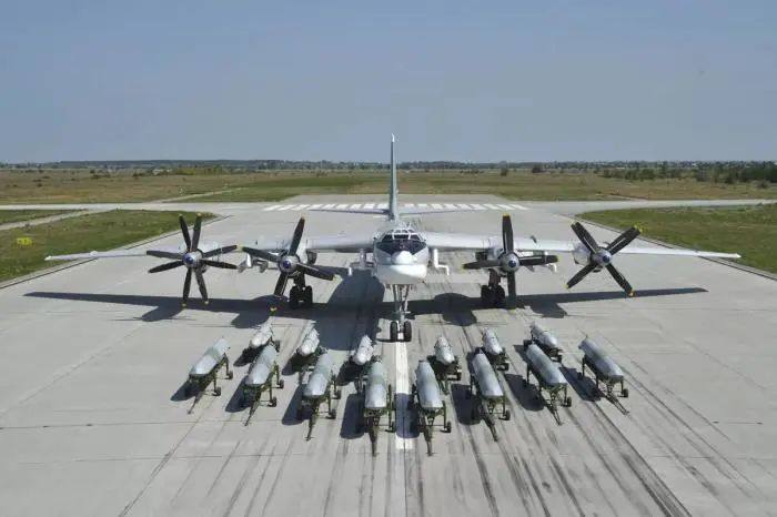 俄国防部表示,乌克兰5日出动无人机袭击俄境内萨拉托夫州和梁赞州的军事机场,导致3人死亡、4人受伤。这两座军事机场非同一般,是俄军的核心空军基地,这里部署着俄空天军的图-160和图-95战略轰炸机。俄一架图-95MS轰炸机前摆放着14枚导弹。图片来源:俄罗斯国防部