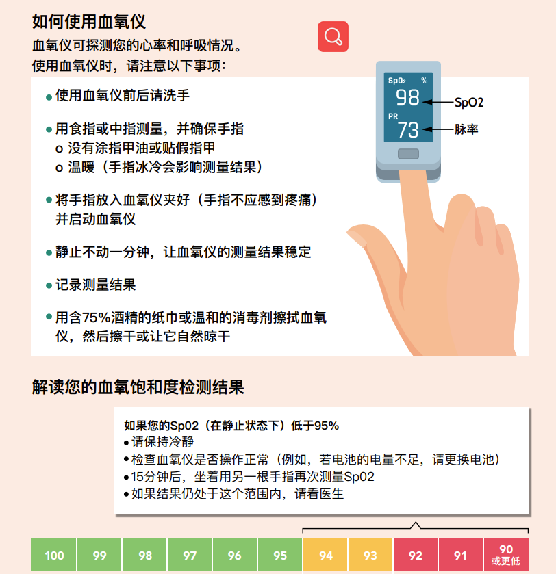 对于选择在家隔离和康复的感染者,在保证自己能够吃好,休息好的同时,还需要学会自己监测以下指标:症状,体温,脉搏,氧饱和度。