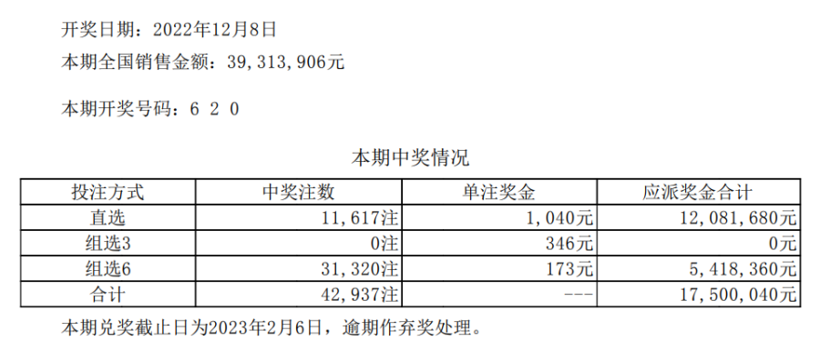 【最新开奖】12月8日体彩联网玩法开奖公告
