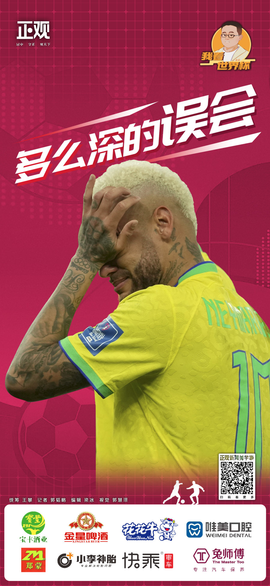 当120分钟的比赛结束的那一刻,内马尔对于即将到来的结局可能是有预感的。镜头扫过,他的脸上泛过一丝苦笑。那不是有备而来的从容,也不是决一死战的坚定,有的是惊讶之余的无奈:这样的场景原本不在他和队友们的预计当中。数分钟之后,没轮到内马尔出场,点球大战就已经落幕了——克罗地亚人用事实证明,过往关于他们的种种,不过是一个误会,一个天大的误会!