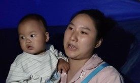 李敏和宝宝在安置帐篷中