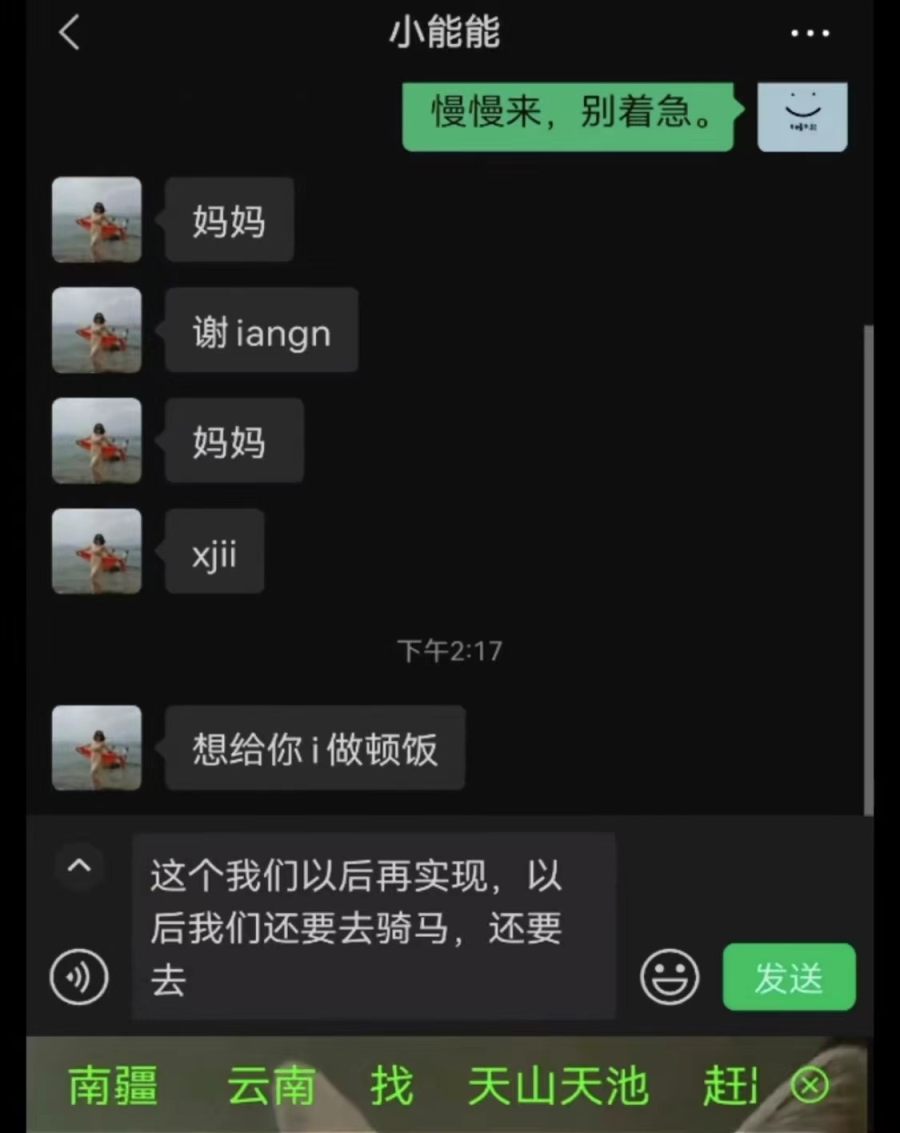 8月10日,刘文燕坐在电脑面前,她兴奋得合不拢嘴。在微信聊天界面,眼球无数次转动后,用了二十多分钟,刘文燕打出了几个零散的词语,“天赐,谢谢你,妈妈想给你做顿饭。”