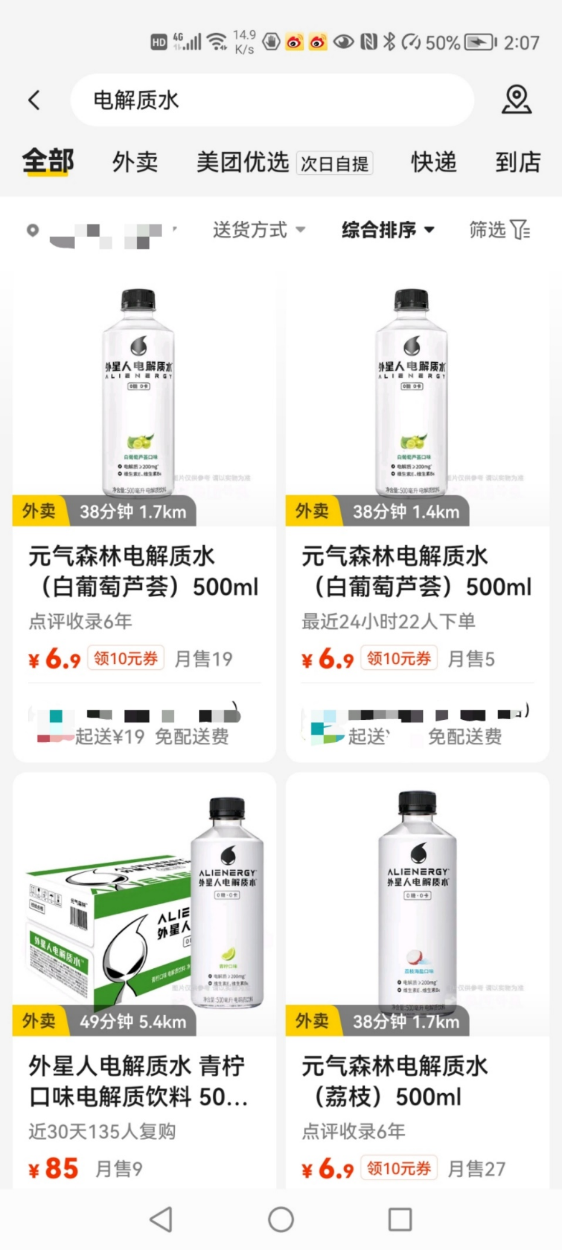 线上平台,如美团、饿了么、多多买菜等多个线上平台搜索“电解质水”,本地货源确实充足,并无缺货情况,月销售量也无异常暴涨现象。