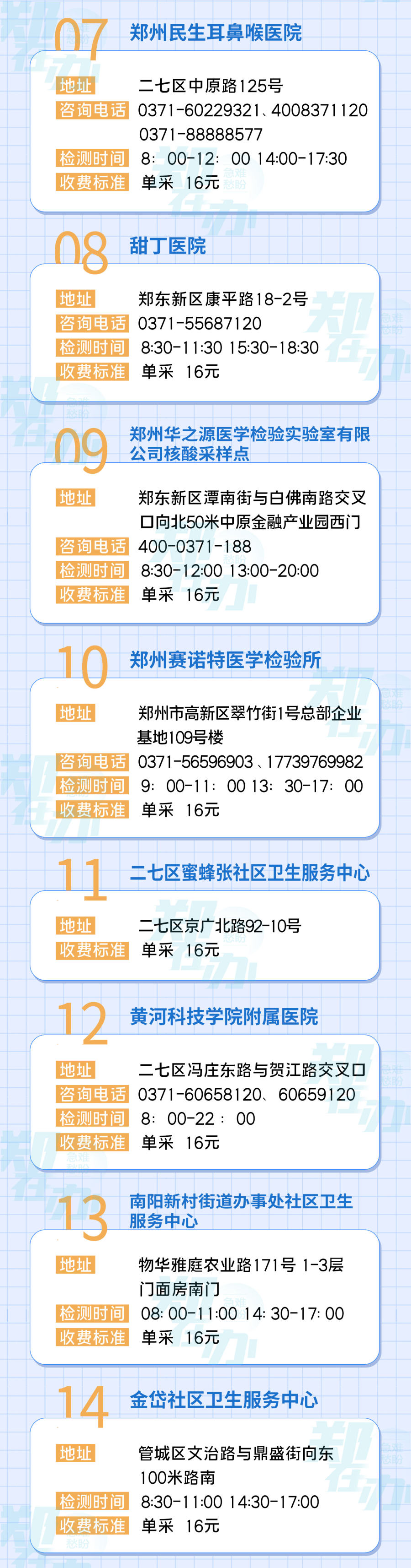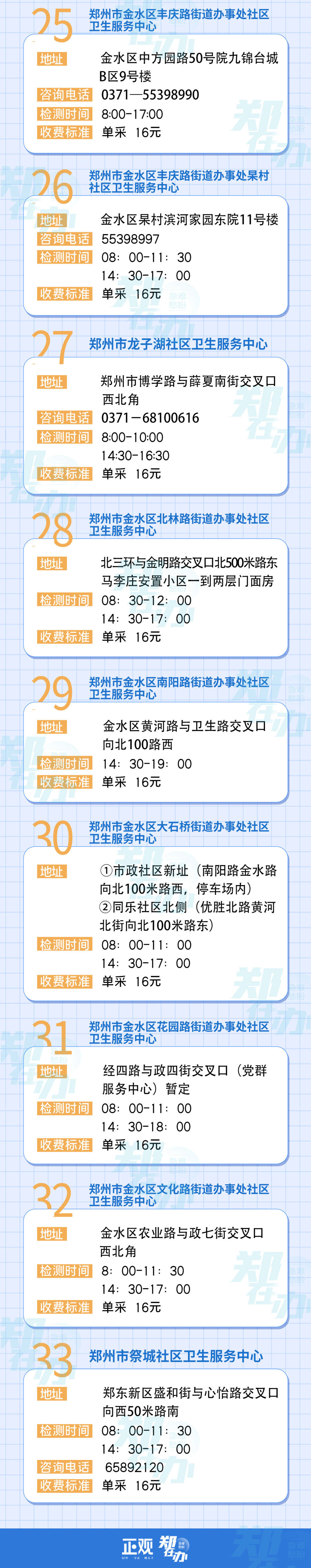 12月14日,正观新闻·郑在办记者汇总整理了郑州市区部分单采核酸检测点的具体信息,有需求的市民可以在开放时间内,就近选择采样点进行核酸检测。