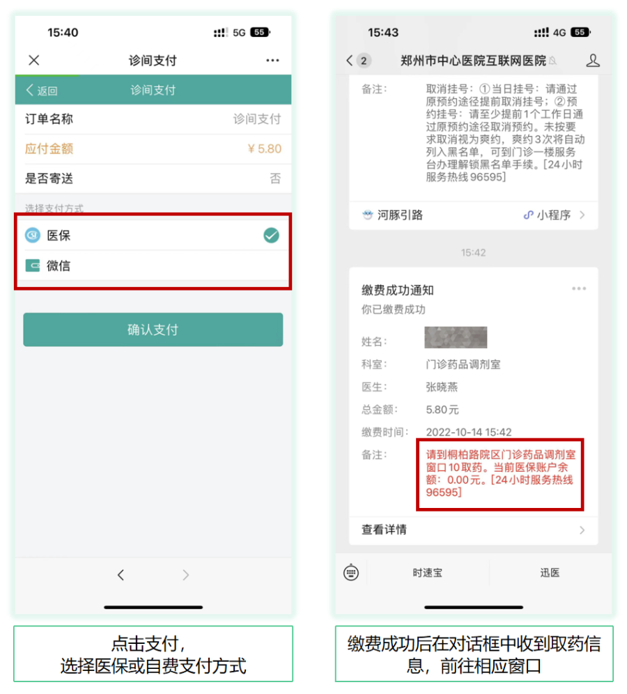 复诊患者,在问诊过程中,医生可为患者开具药品医嘱,在线支付后,可直接前往指定窗口拿药。