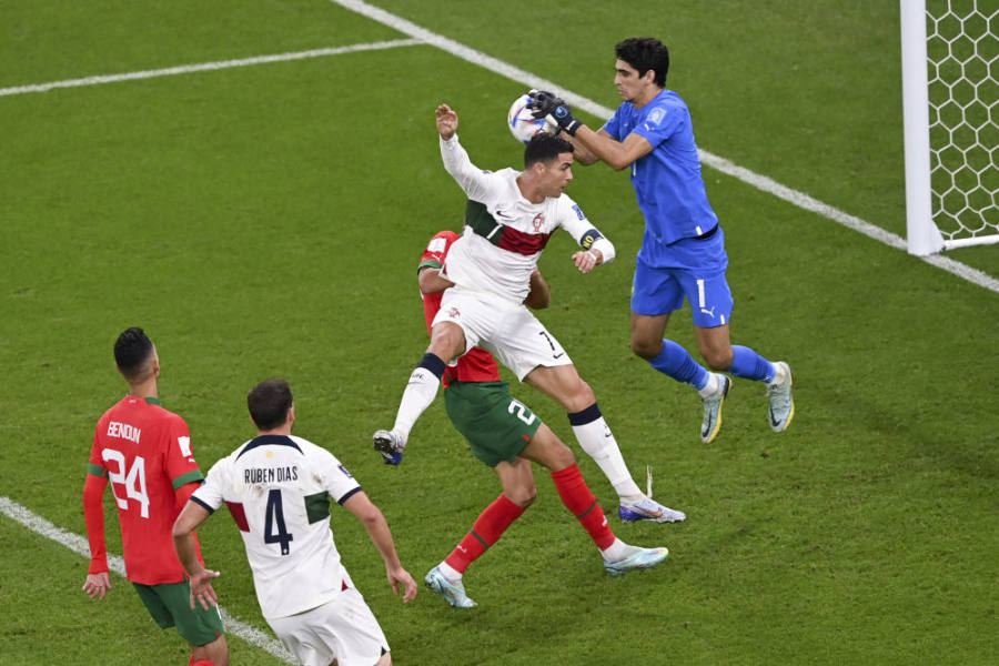 摩洛哥队门将布努同样表现优异,本届世界杯,他仅仅在对阵法国队的半决赛中丢失两球(不算之前的点球大战与队友一粒乌龙)。在对阵西班牙队的八分之一决赛中,布努更是扑出了对方两粒点球。在四分之一决赛中,他直接零封了葡萄牙队,让C罗饮恨。