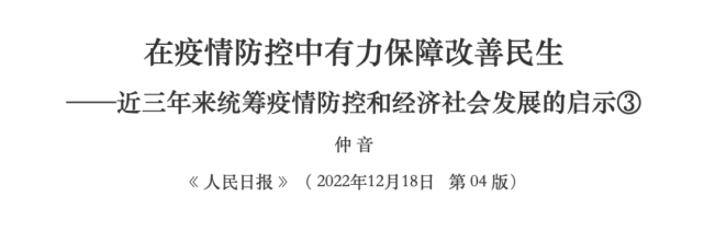 在这样的背景下,这几天,《人民日报》连续发表了署名为“仲音”的文章。聚焦的主题都是“近三年来统筹疫情防控和经济社会发展的启示”。