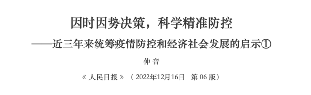 《人民日报》在文章中提到,近三年来的疫情防控充分说明,尊重科学是抗疫的有效武器,实事求是是抗疫的重要法宝。