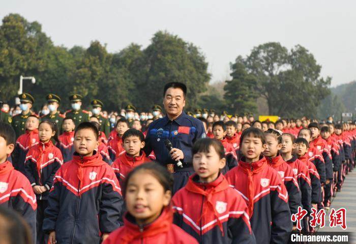 交接仪式上,航天员张晓光和少先队员朗诵诗词《水调歌头·重上井冈山》。 杨华峰 摄