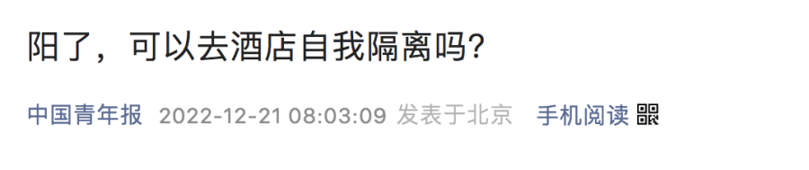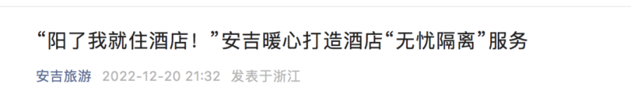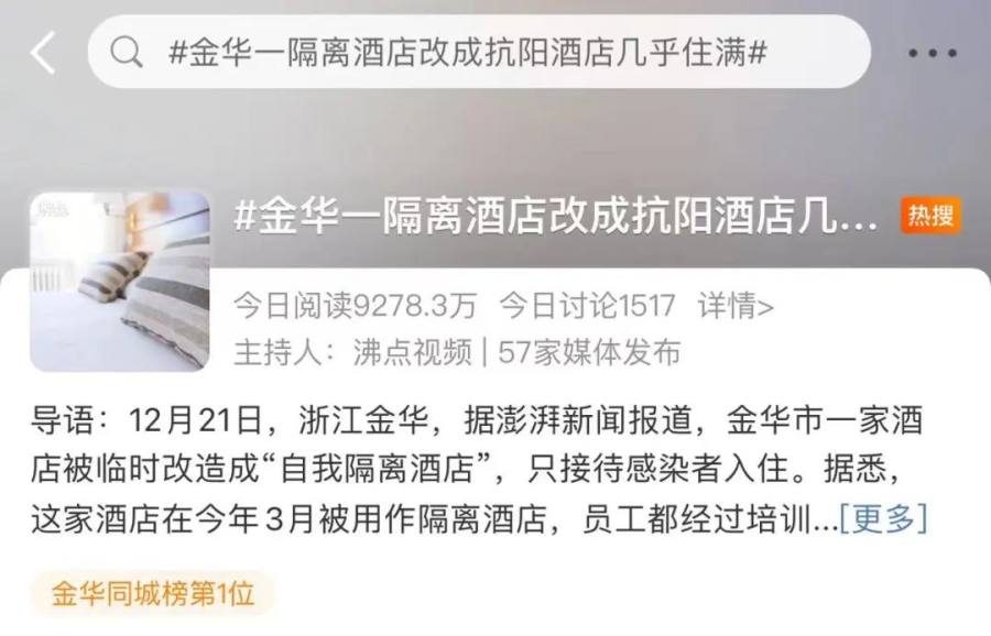 据澎湃新闻消息,12月20日,浙江金华永康市某酒店宋经理称,“我们很多会员都阳了,来咨询是否能在酒店自我隔离,我们将下辖一家酒店临时改造成自我隔离酒店,只接待阳性感染者入住,目前的入住率约在80%。”