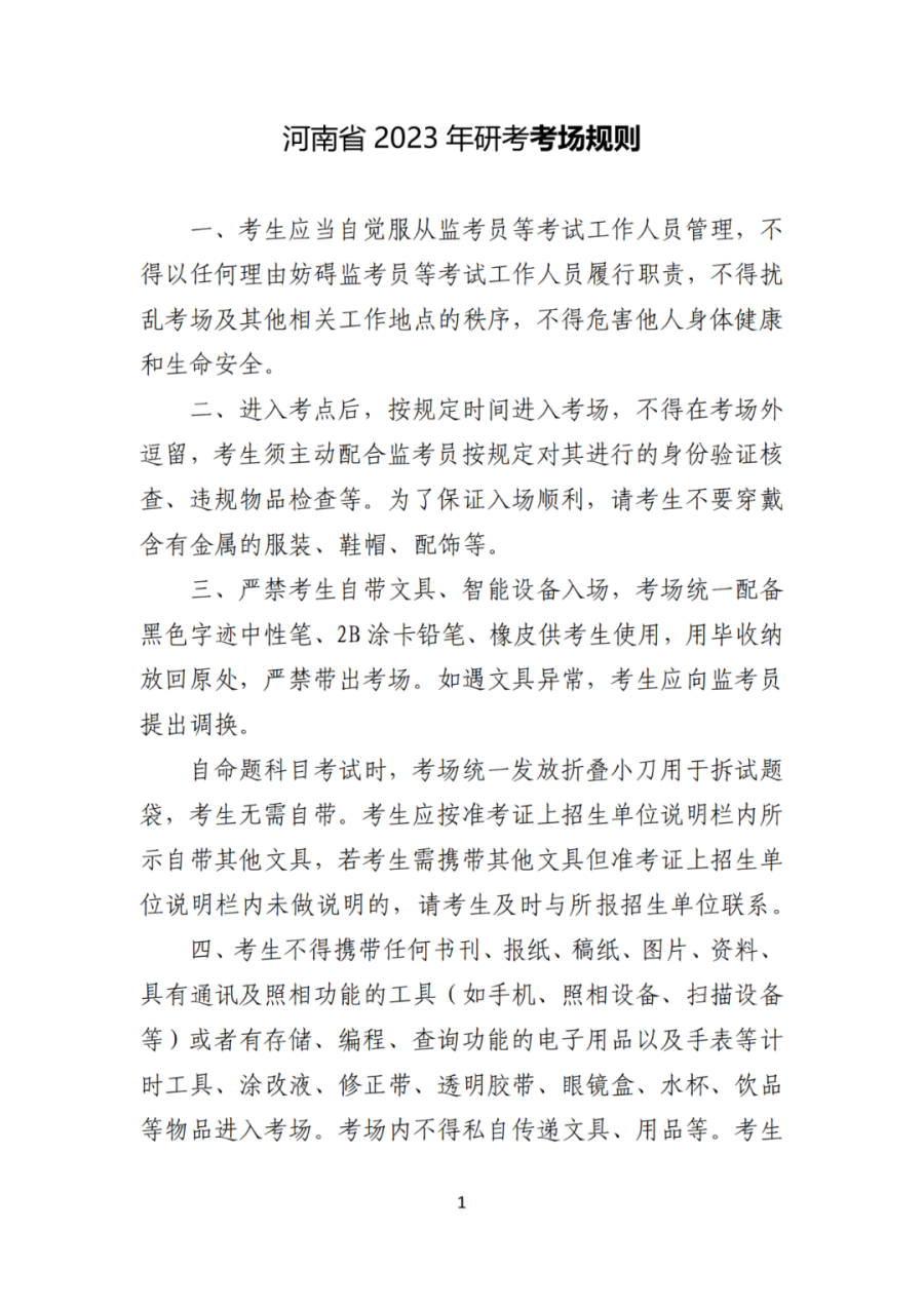 河南发布研考考前温馨提醒,附考场规则