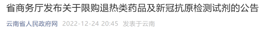 云南发布关于限购退热类药品及新冠抗原检测试剂的公告