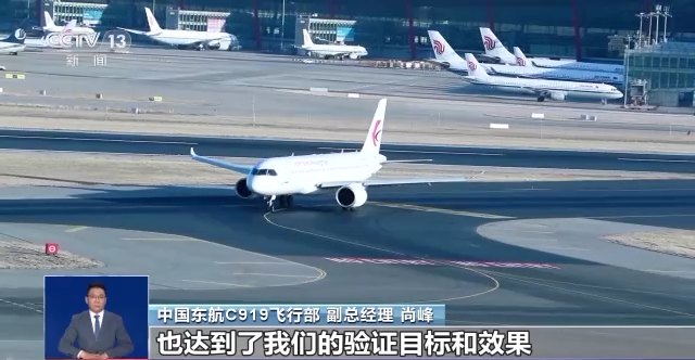 中国东航C919飞行部 副总经理 尚峰:今天是我们第一天开始航行验证飞行,整个过程非常顺利,航路也很平稳,也达到了我们的验证目标和效果。后续我们还将开展一个多月的航行验证(飞行),一直持续到二月中旬。将会前往北京大兴、西安、成都天府等机场。