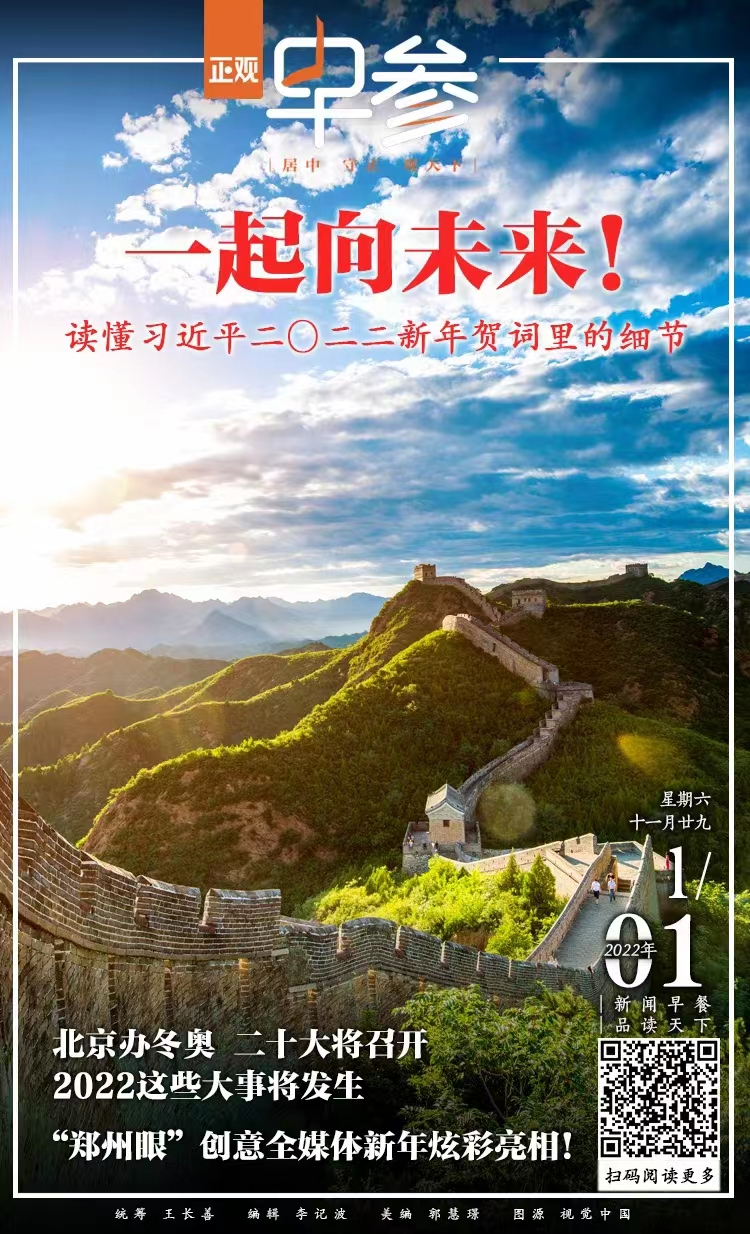 岁月流转,很高兴,我们又陪你走过了一年。这是正观今年的第一份早参。当2022的第一缕阳光铺满大地,心中似乎有了光亮,怀揣着总书记的期待,一起向未来,继续追光前行。