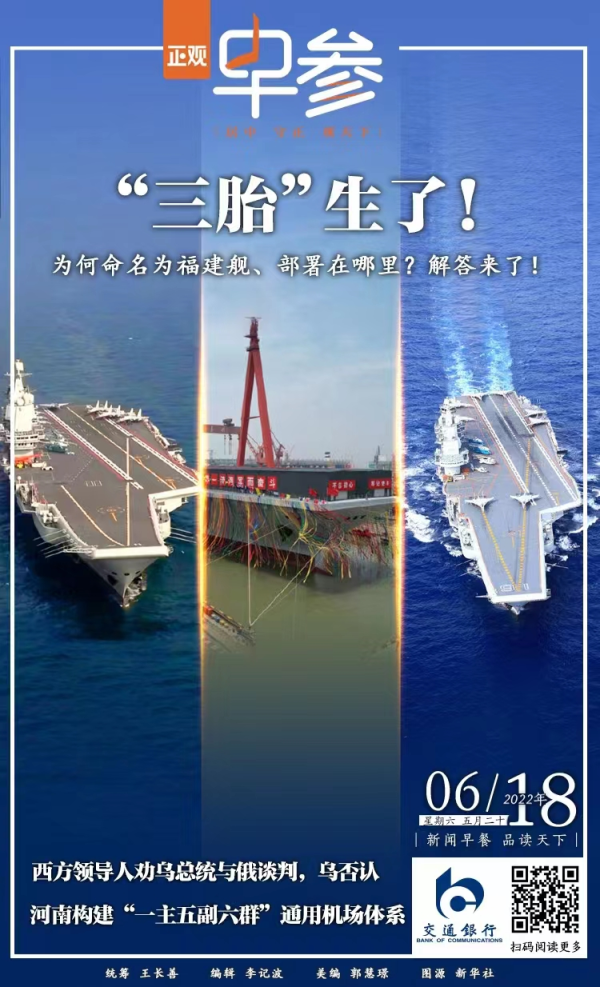福建舰下水,中国进入三航母时代!从辽宁舰——百年航母梦终圆,到山东舰——进入双航母时代,再到福建舰——三舰集结驰骋远海,人民海军不断以全新的姿态行进于逐梦深蓝的征程上。未来航母三“舰”客将继续劈波斩浪,共护海疆。