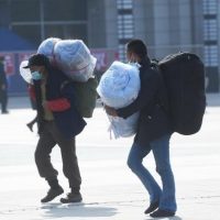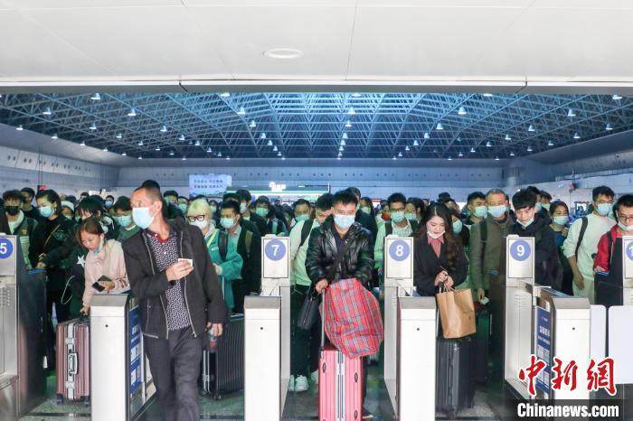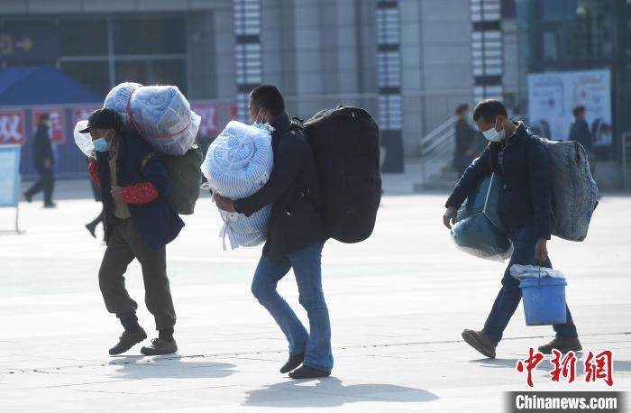 资料图:2022年春运,旅客背着行李踏上回家路。陈超 摄