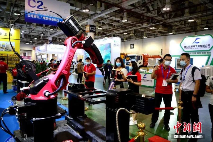 资料图:2020年7月9日,2020厦门工业博览会暨第24届海峡两岸机械电子商品交易会在福建厦门揭幕。图为客商了解新型模具设备。
